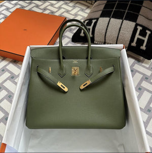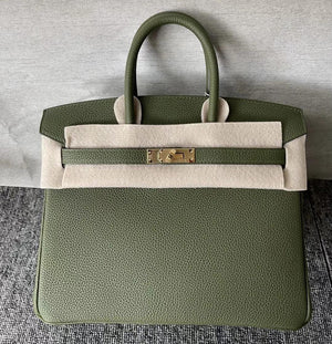 The Hermes Birkin 25 in Canopy Green is a timeless icon of luxury and craftsmanship. Designed for women who appreciate elegance and exclusivity, this statement handbag features a rich green tone paired with gold hardware for a refined, sophisticated finish.