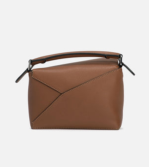 Its rich brown tone adds warmth and versatility, making it suitable for both casual styling and refined occasions. Known for its architectural silhouette and premium craftsmanship, the Puzzle Bag is a standout piece in the Loewe collection.