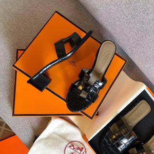 Step into refined luxury with HERMES Women’s Oasis Heels in a striking black croc finish. Designed for women who love elegant elevation with everyday comfort, these heeled sandals are perfect for evening wear, special occasions, and sophisticated daytime looks.