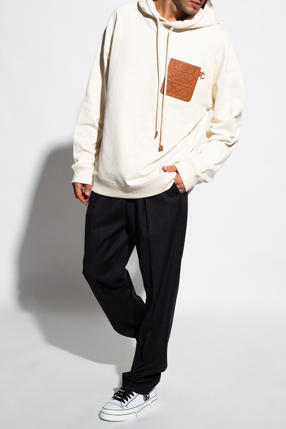 LOEWE Men’s Anagram Leather Patch Hoodie – Beige