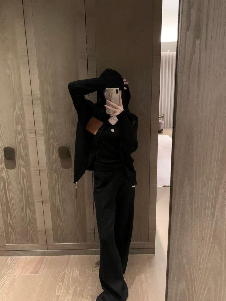 LOEWE Women’s Hoodie & High-Waist Wide-Leg Knit Co-Ord Set – Black