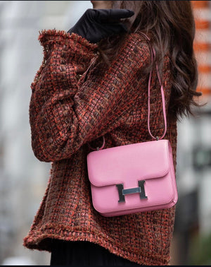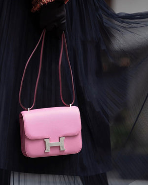 Home New Arrivals HERMÈS 18CM CONSTANCE VERSO MAUVE SYLVESTER WITH ROUGE EXOTIC INSIDE CHÈVRE PALLADIUM HARDWARE