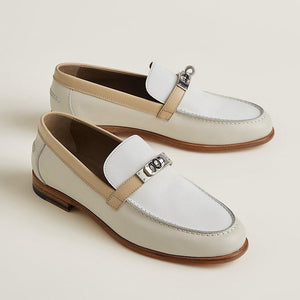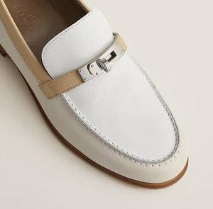 HERMES Women’s Destin Loafer – White & Beige Leather | Elegant Loafer Shoes