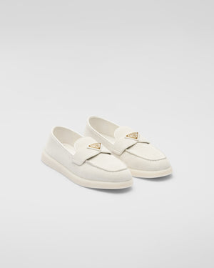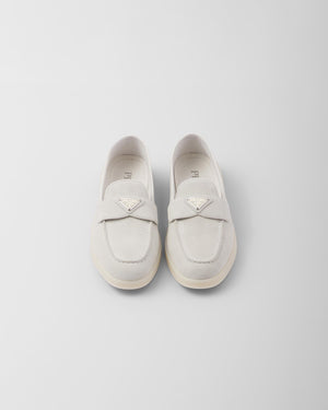 PRADA Women’s Suede Loafers – Grey & White Luxury Shoes