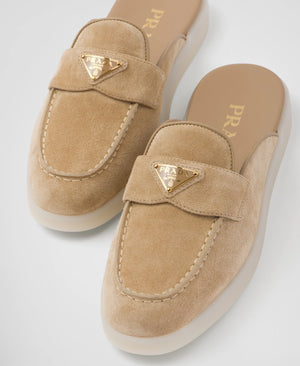PRADA Women’s Suede Mules – Camel Luxury Shoes