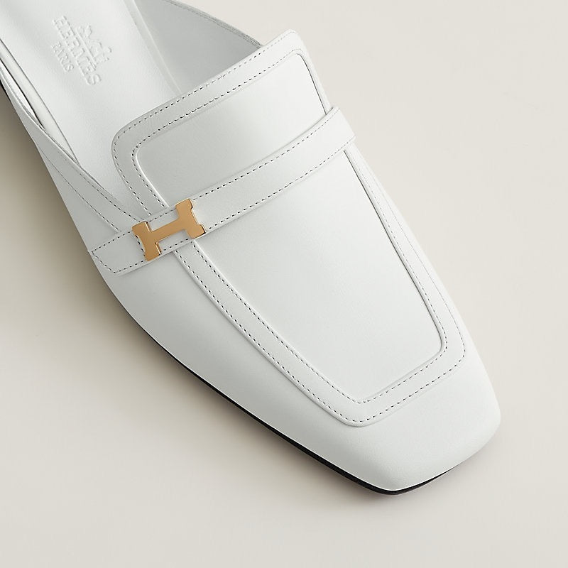 HERMES Women’s Groupie Mule – White | Elegant Slip-On Shoes